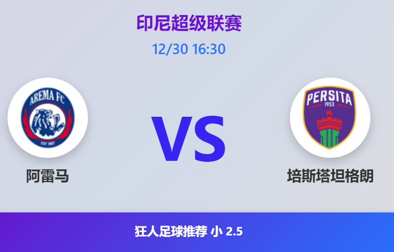 比赛预测:印尼超级联赛 12/30 16:30