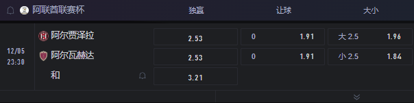 | 12.5 | 阿尔贾泽拉 VS 阿尔瓦赫达 | 小 2.5 |